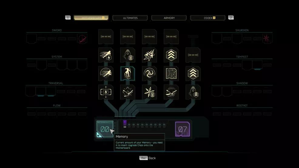 These missteps extend from gameplay into design decisions. Gone are the polyomino skill blocks of the first game, a design choice I applauded in my review of the original. Instead, players will need to collect chips that increase how many skills you can equip. Skills are purchased by earning XP which is acquired from defeating enemies, clearing missions, and playing the various challenges dotted throughout each level. This felt like a step back from the original game’s unique idea and puts Ghostrunner 2’s upgrade system in-line with more traditional and trite design choices.